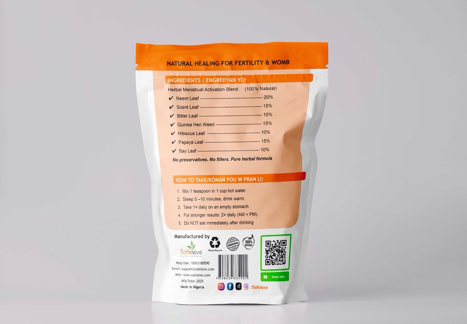 Your package includes a clear “How to Take” guide, making it simple to incorporate this herbal blend into daily use. Whether added to a womb-healing plan, used alone for menstrual activation, or paired with your SafeLeve products, this blend is a trusted companion on the journey to natural fertility and hormonal balance.